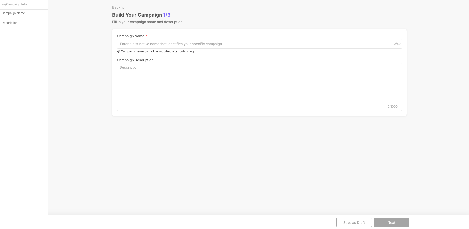 Fill in the *campaign name* and *description* for easy identification, once you’re ready click next