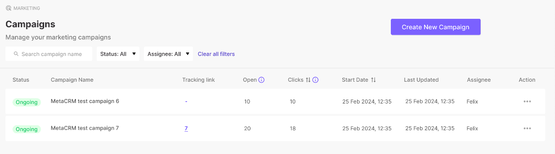 After successfully launching the marketing campaign. You can check the report in [Campaign Analysis](https://metacrm.gitbook.io/metacrm/products/marketing/campaign-performance)